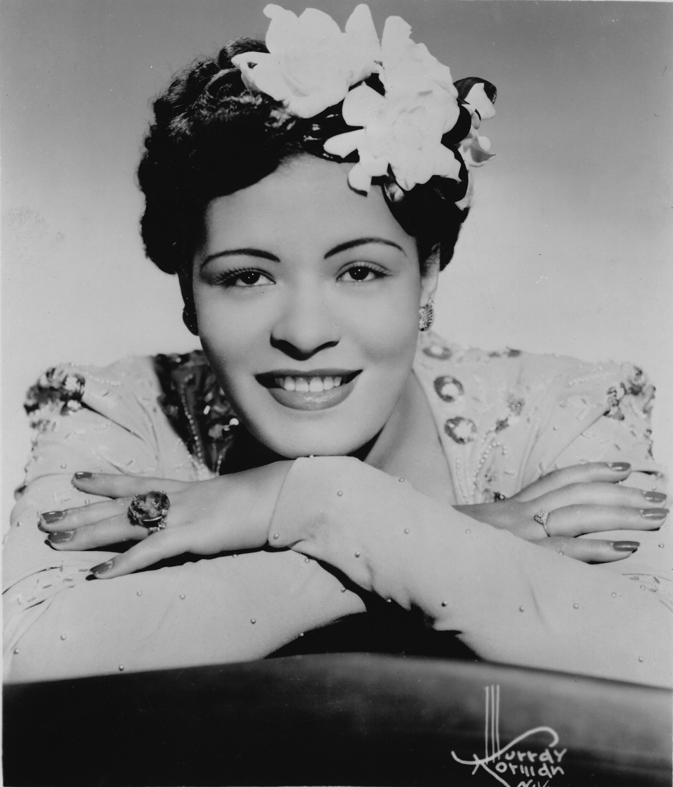 Billie Holiday poses for a studio portrait in 1939 in the United States. (Photo by Gilles Petard/Redferns)